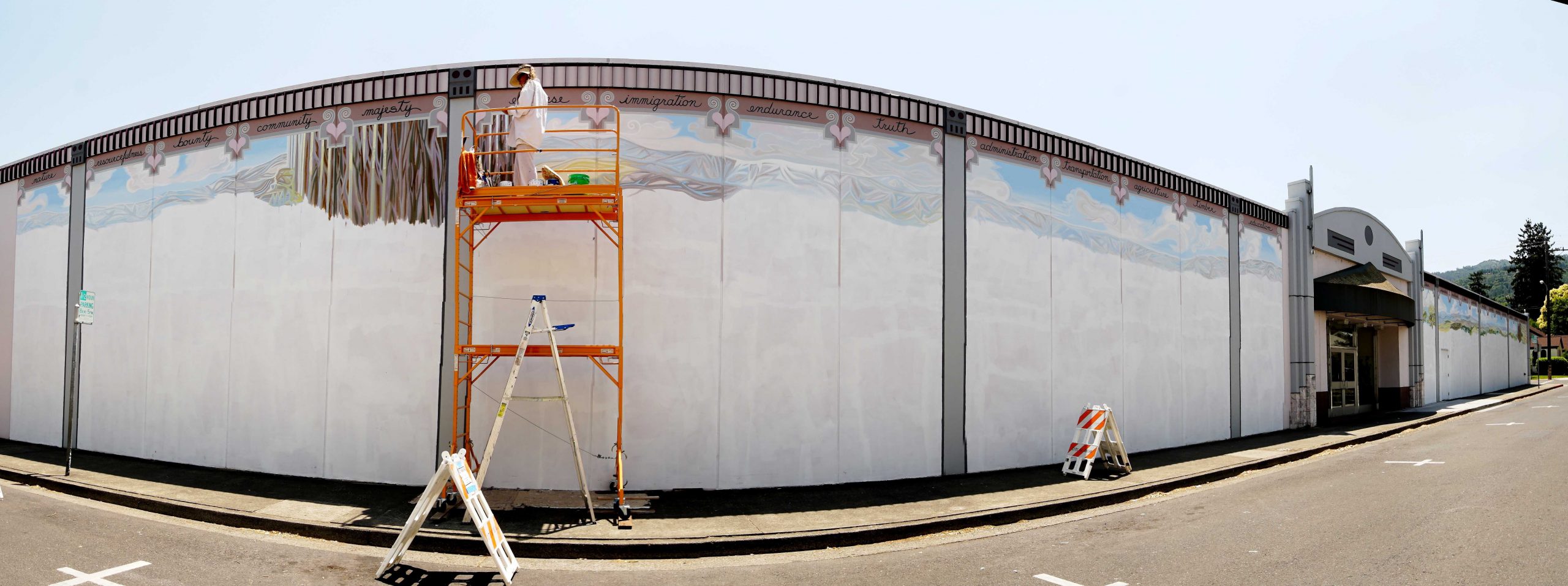 Painting paused every year for winter rains, but because of the outdoor location, Lauren continued work during the pandemic. In 2018 and 2019 there were delays due to smoke-filled air.