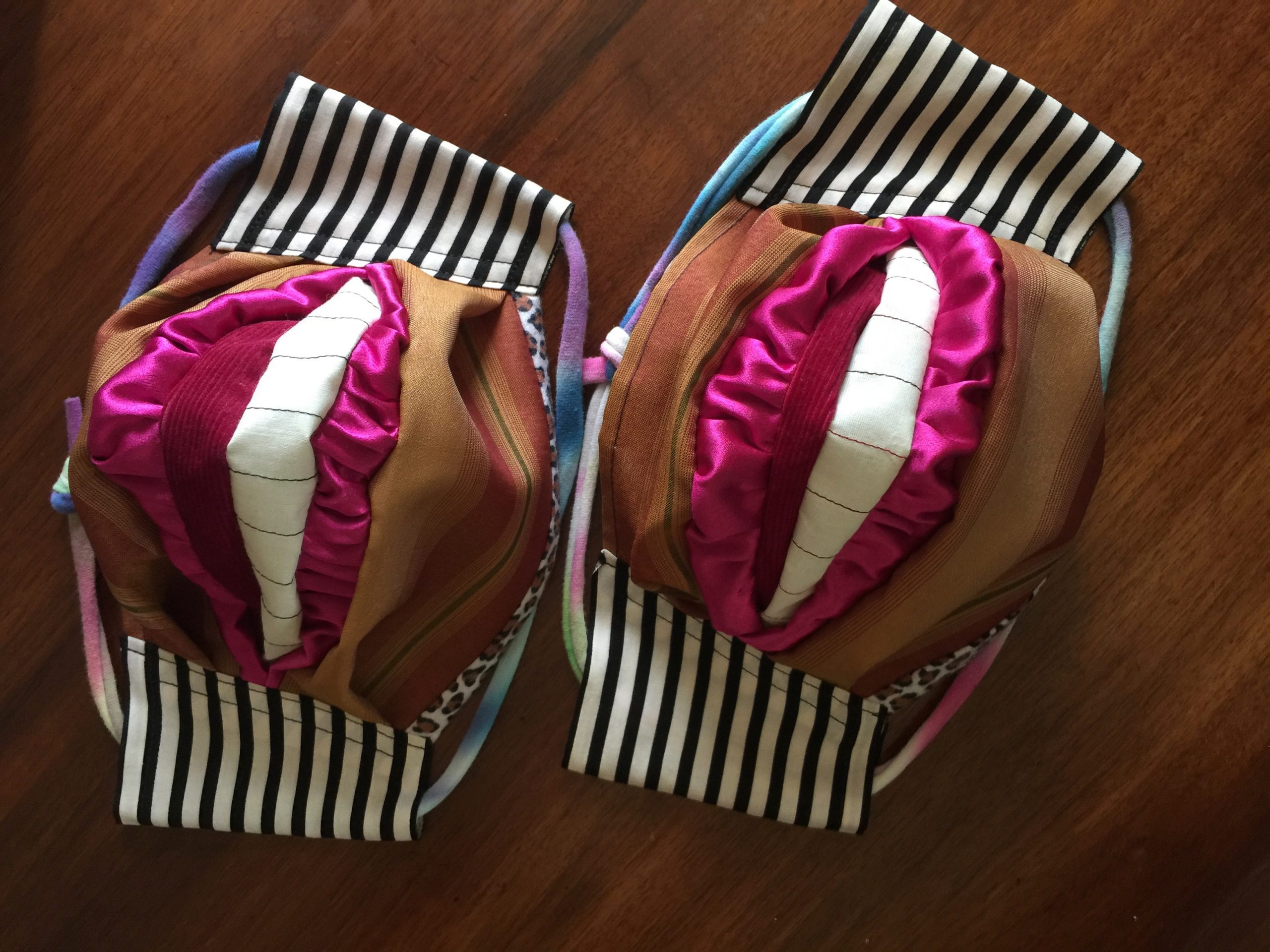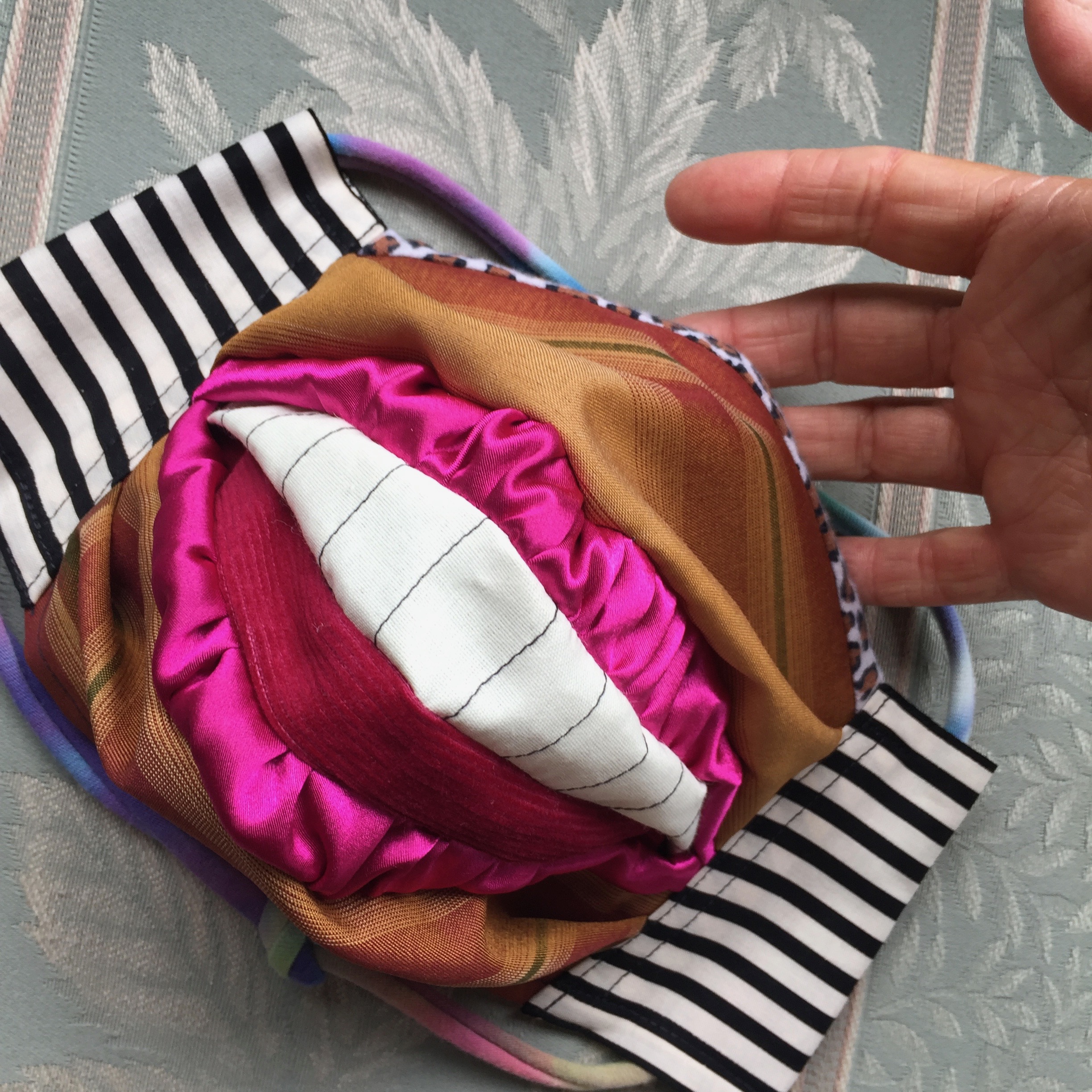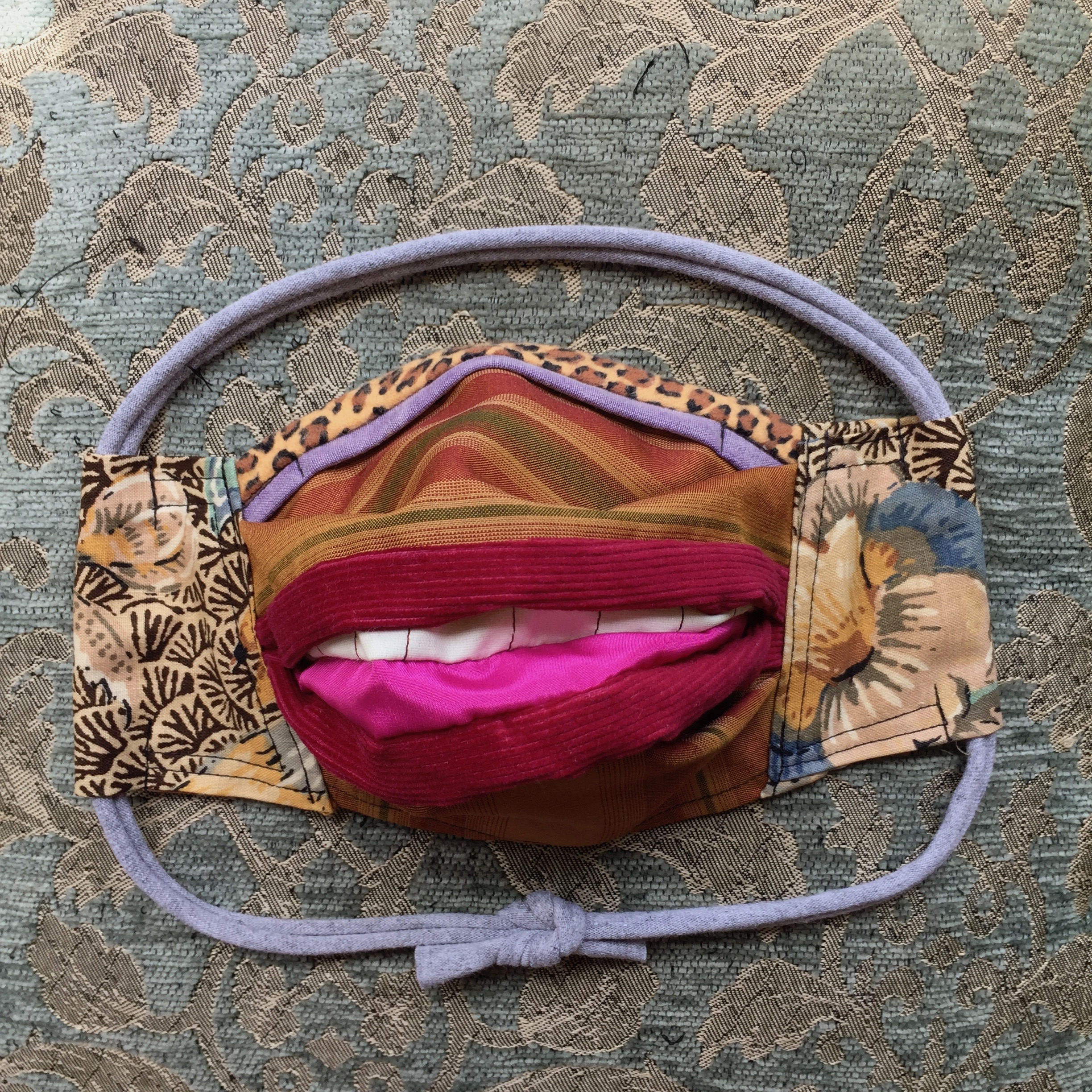 All my masks including Smiles have the tie method that never has to be retied, are made of high filtering, washable fabrics, and cup your face rather than pressing down on your nose and mouth. ORDERING INSTRUCTIONS at the bottom of the page