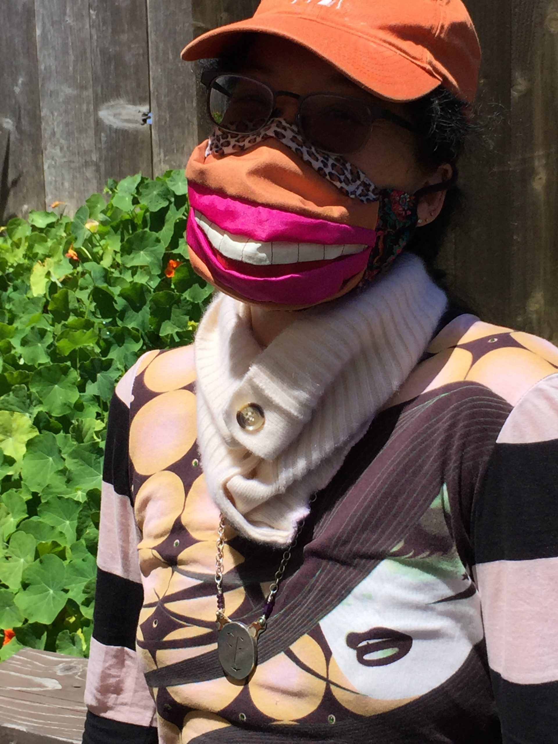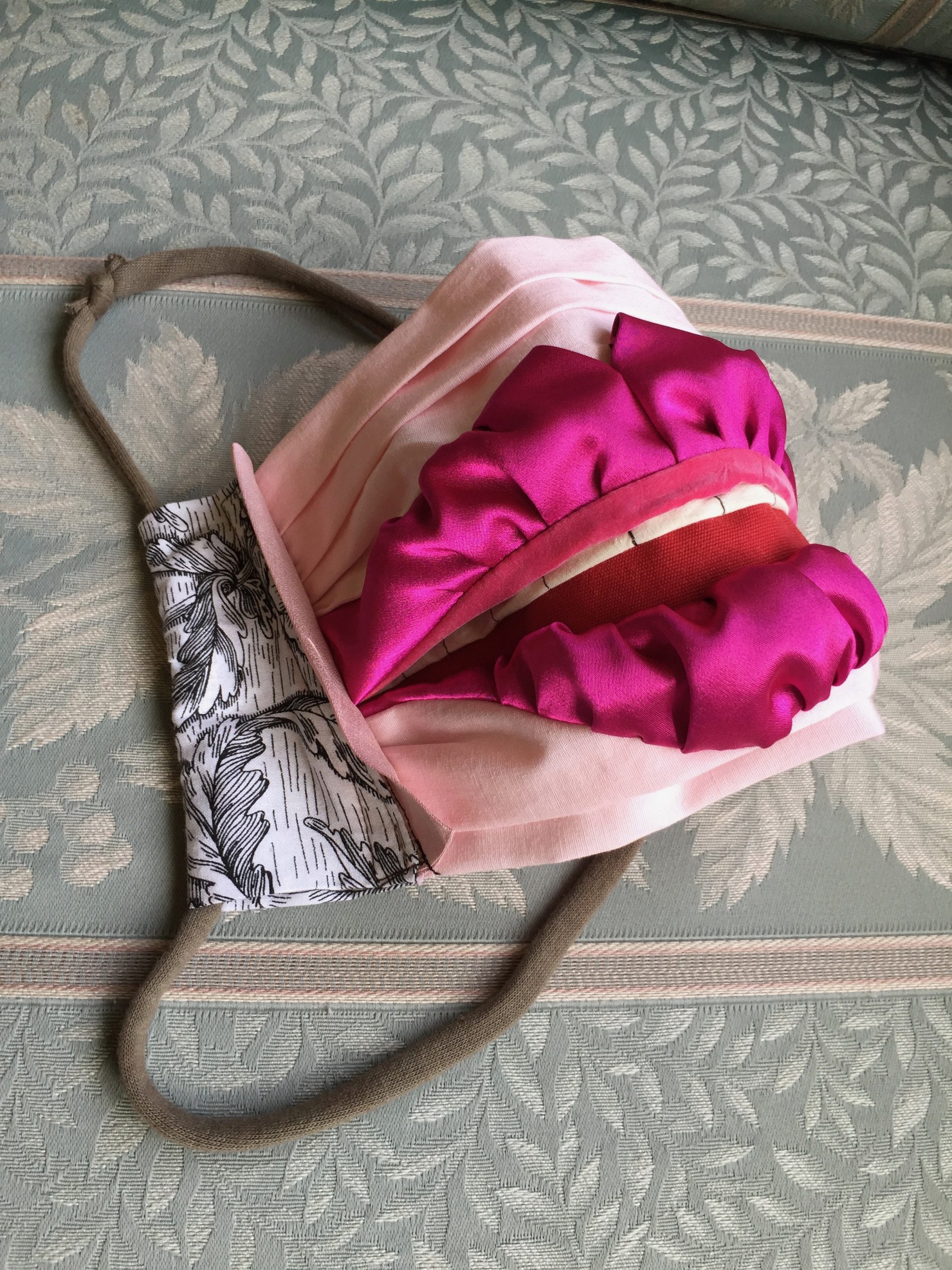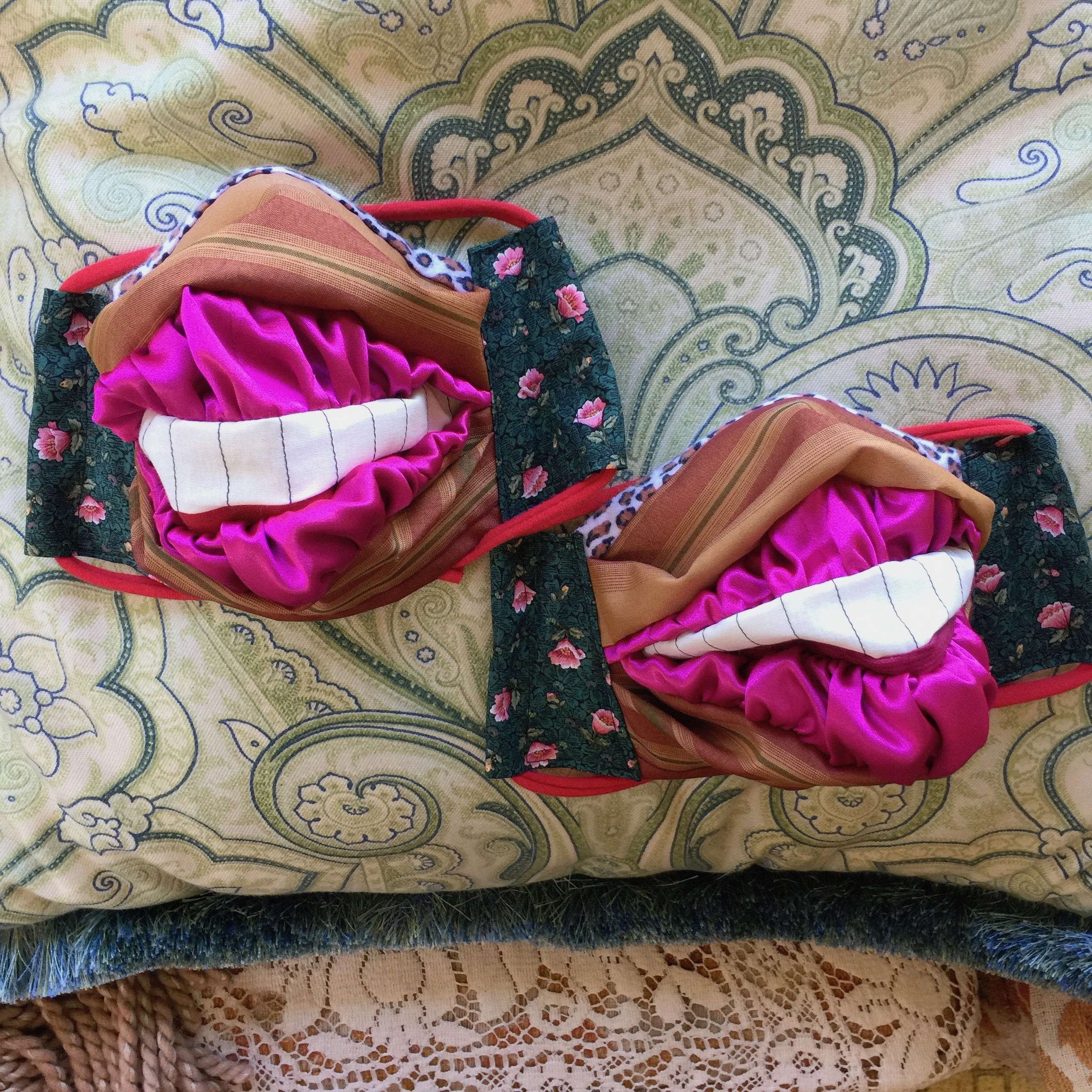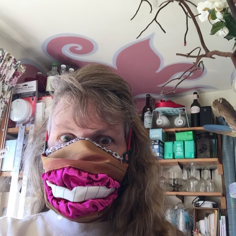 All my masks including Smiles have the tie method that never has to be retied, are made of high filtering, washable fabrics, and cup your face rather than pressing down on your nose and mouth. ORDERING INSTRUCTIONS at the bottom of the page
