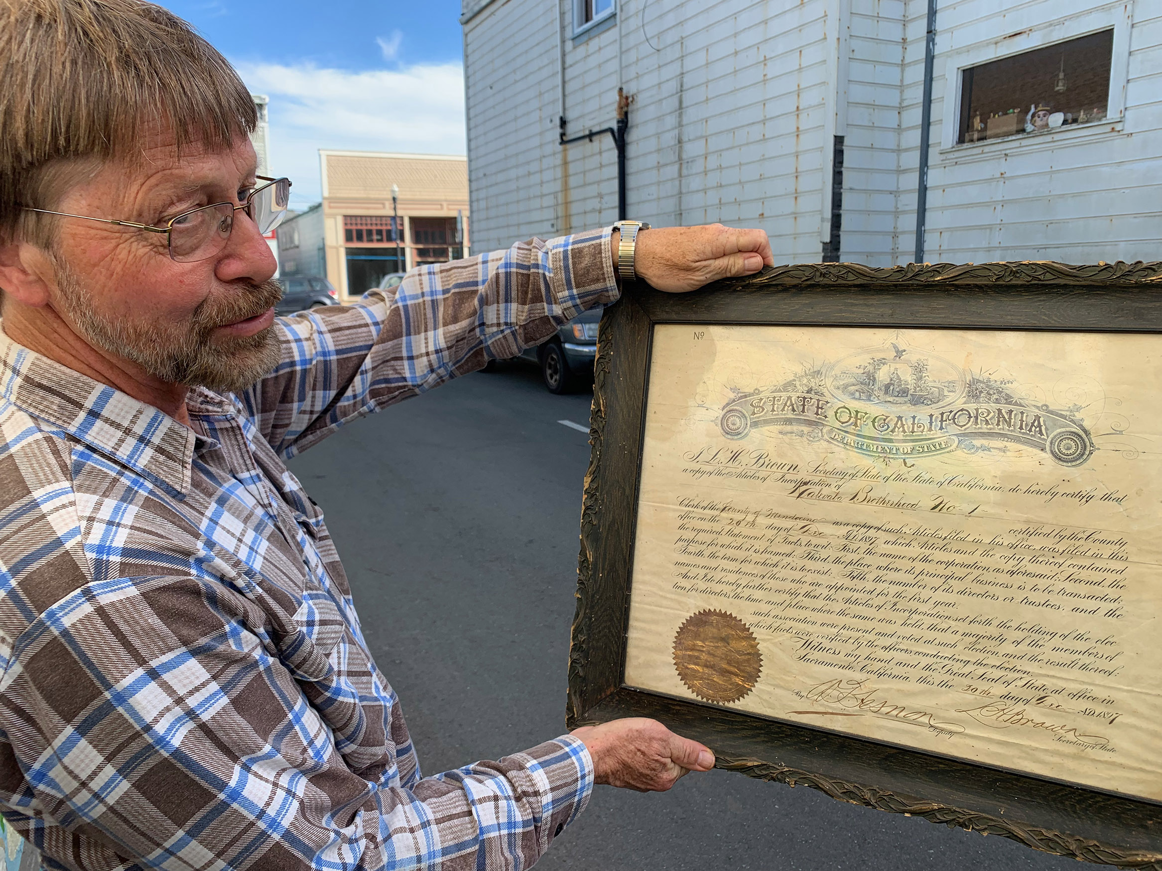 Historical Society member David Maki holds the Fort Bragg chapter of the Kalevala Brotherhood’s founding document (center).
