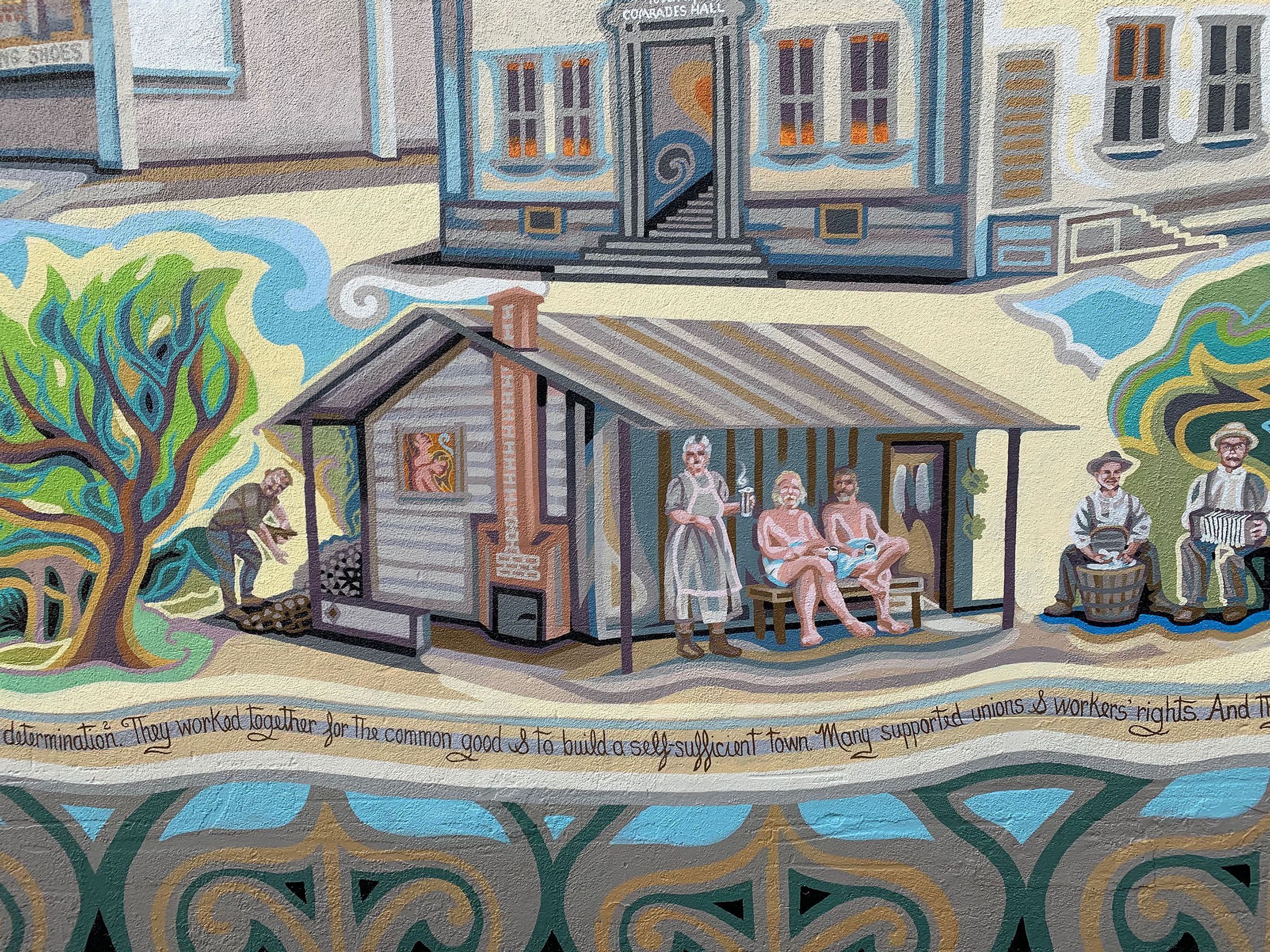 The sauna is another building highlighted in the mural, but it has such cultural significance I gave it its own page. (fourth button below)
