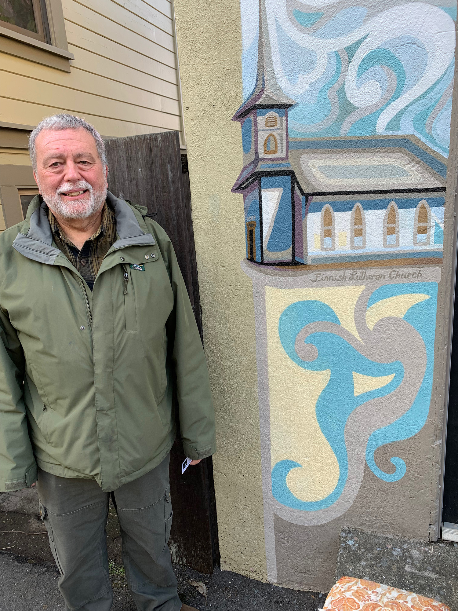Paul Nylund is a local man who comes from one of the Finnish families and attends the church. He sings Silent Night in Finnish at the Christmas night-time service. He suggested that the church be included, that a representation of this community would not be complete without it. See his reaction when I showed it to him for the first time: