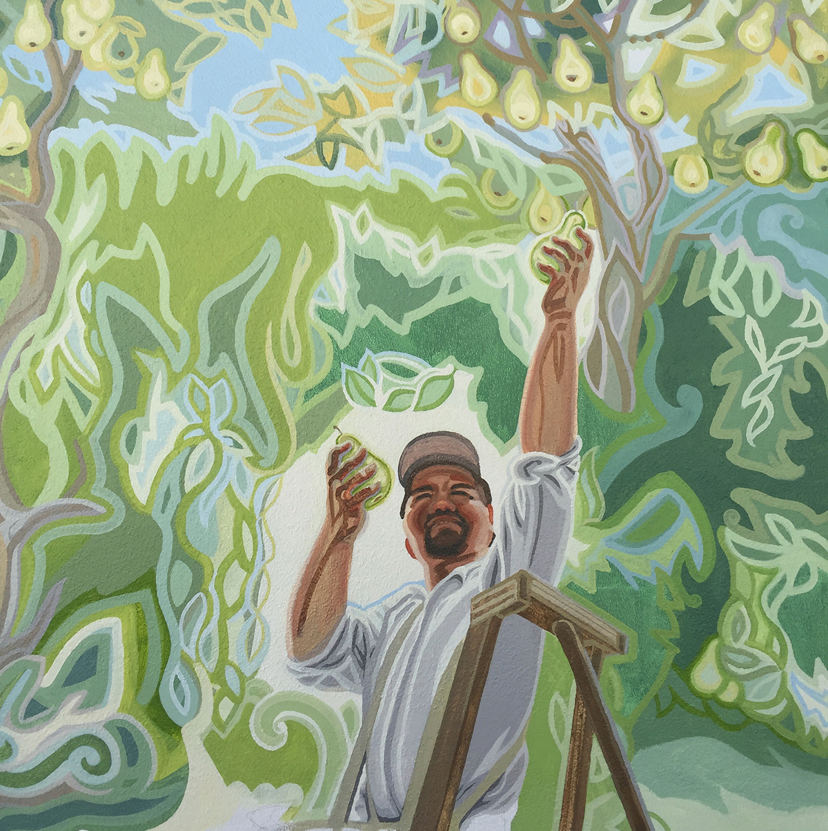 My intention with this panel is to honor labor, the work we do with our hands. Work performed by men, women, children and animals. Work performed for pay, for the household, and for the satisfaction of accomplishing something in the physical world.