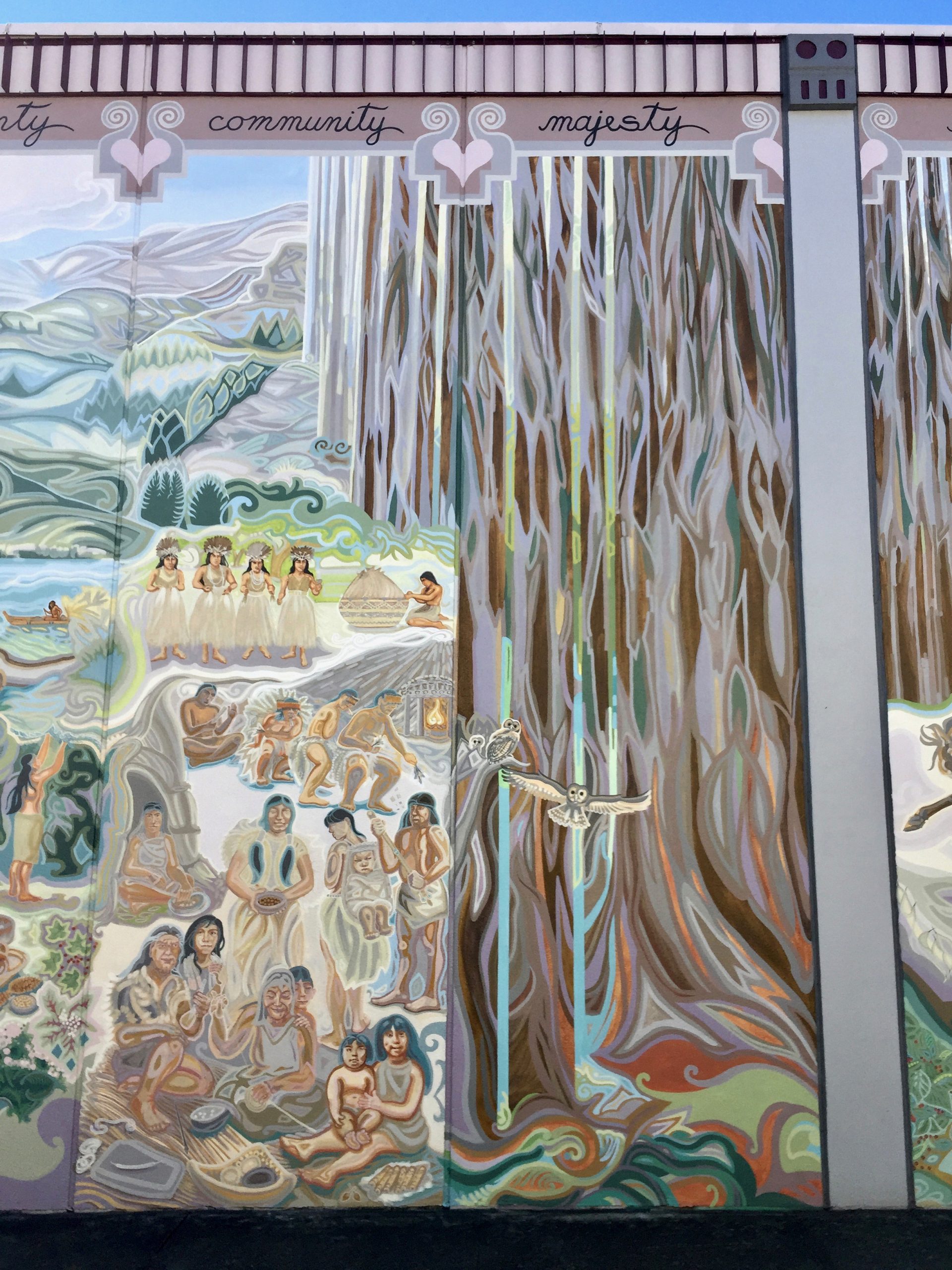 The spotted owl was a species crucial to saving what remnant of old growth forest we still have. It’s true of the whole mural, but this panel is hard to photograph and is more massive and inspiring in person. Come visit!