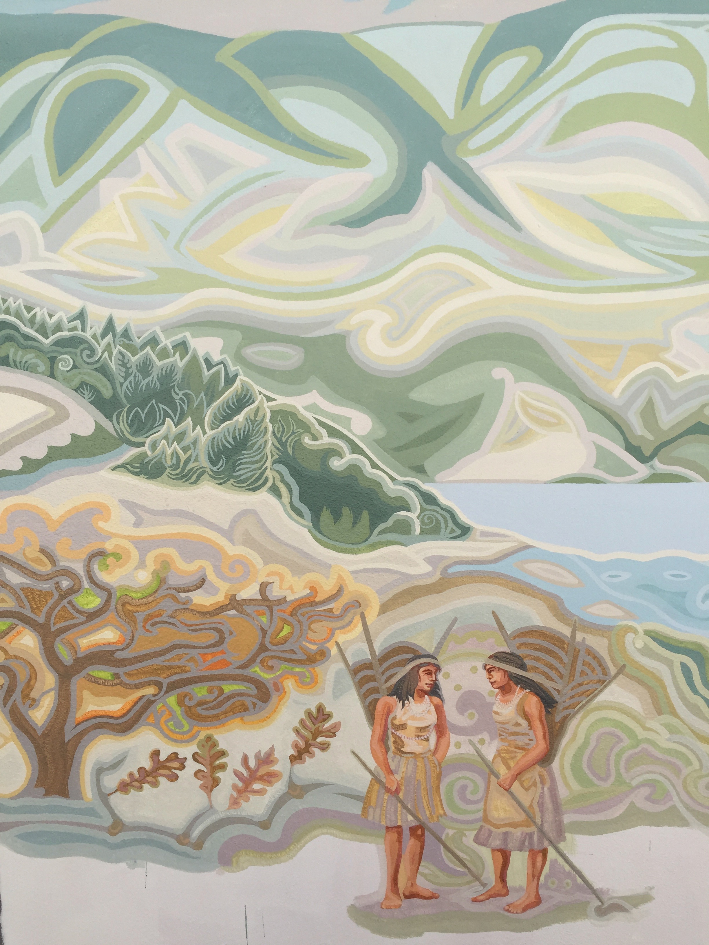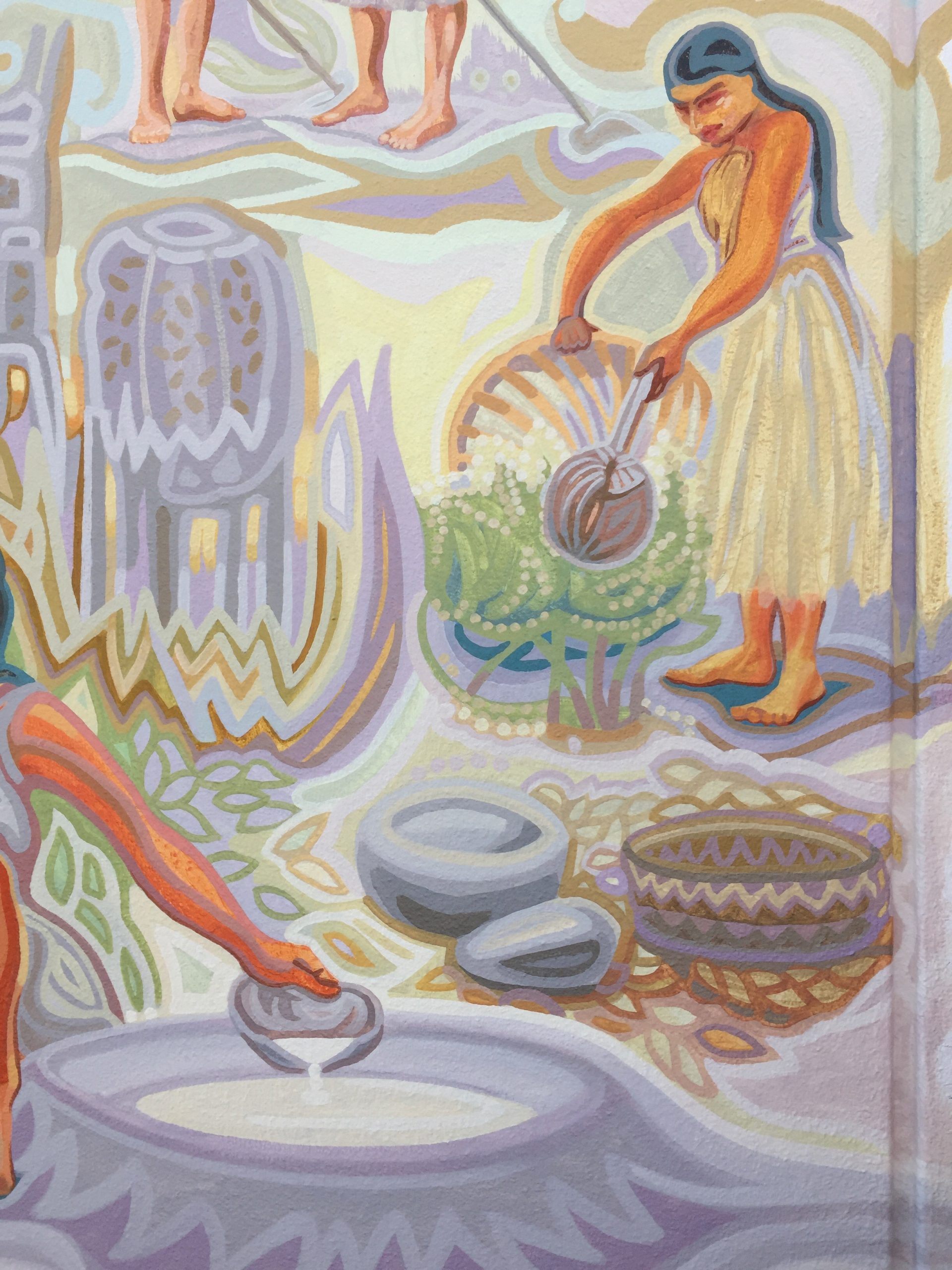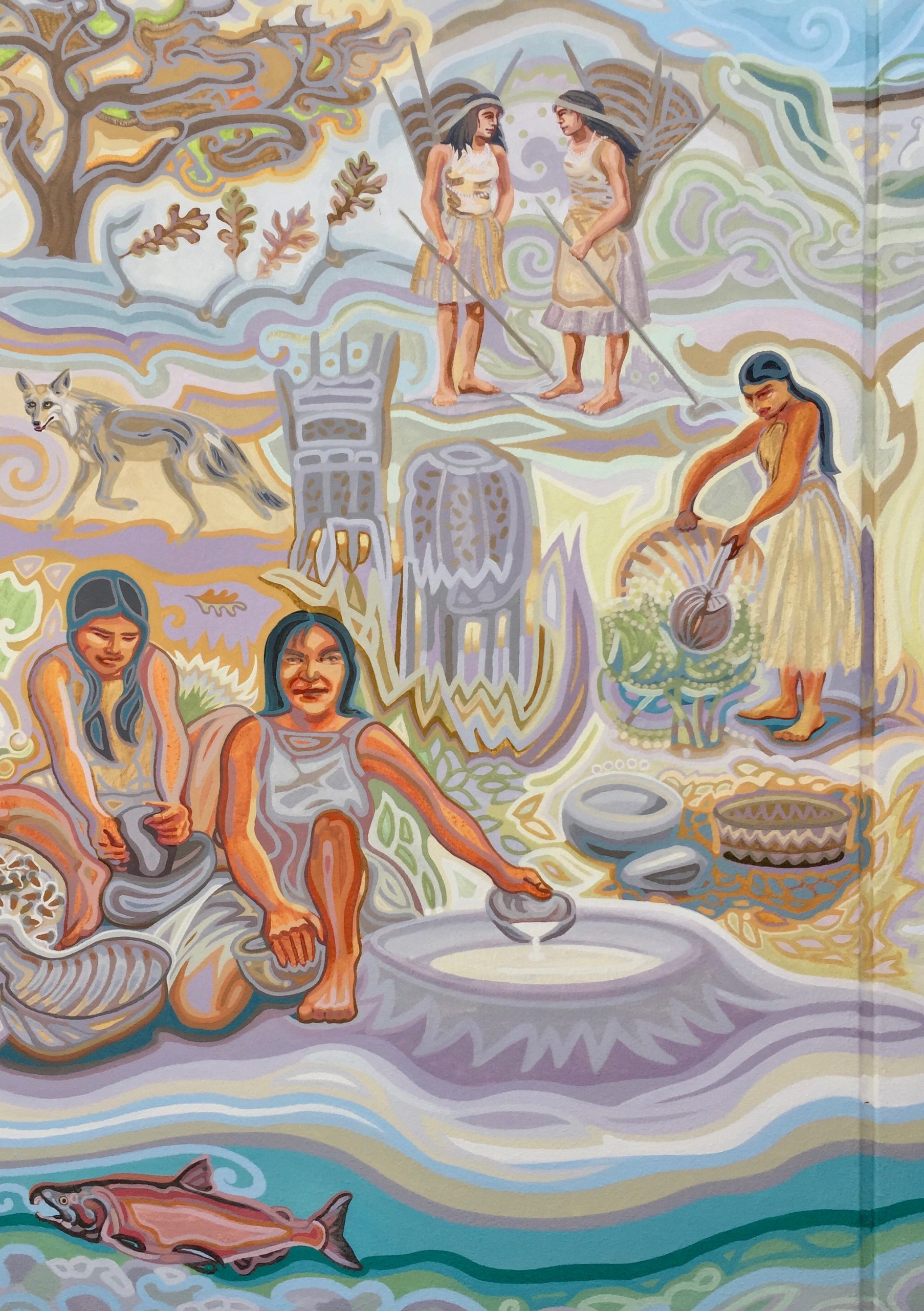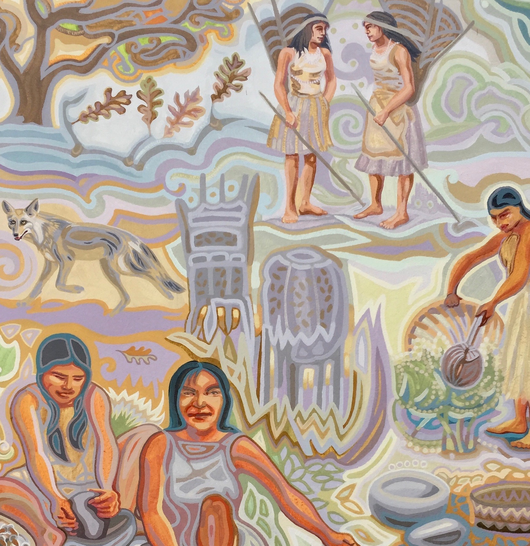 Later in the community panel, I would paint a portrait of 16-year-old Frances Jack, having no idea that the lady with the burden basket and seed beater was her mother!